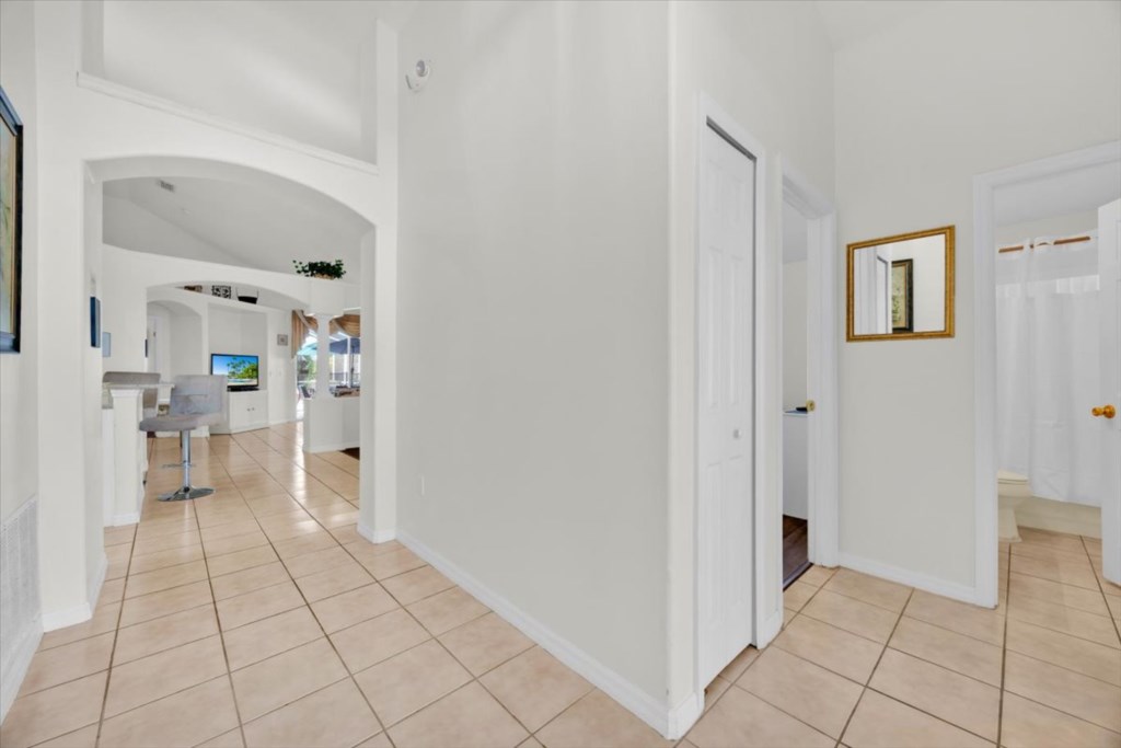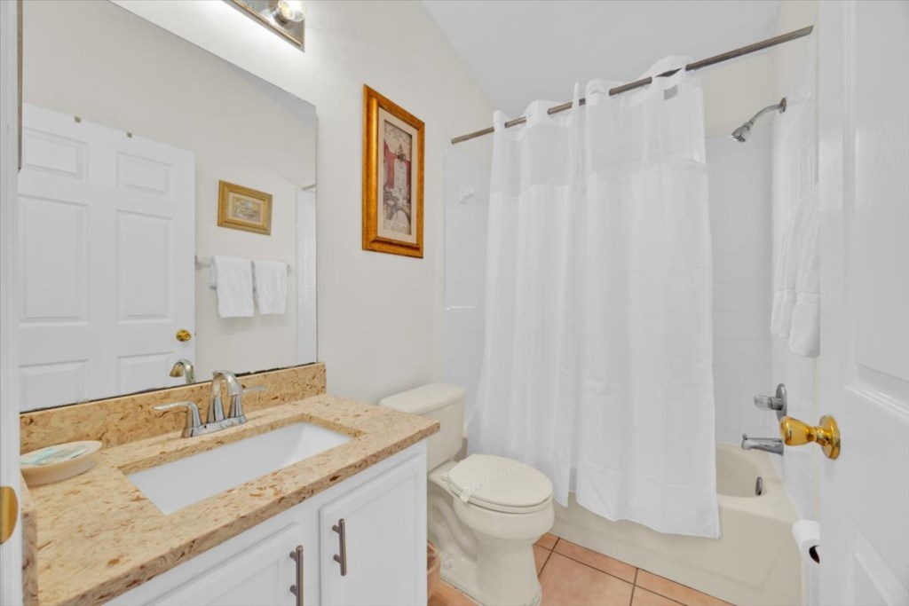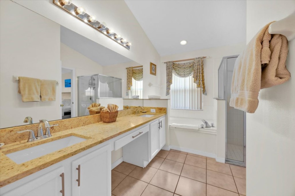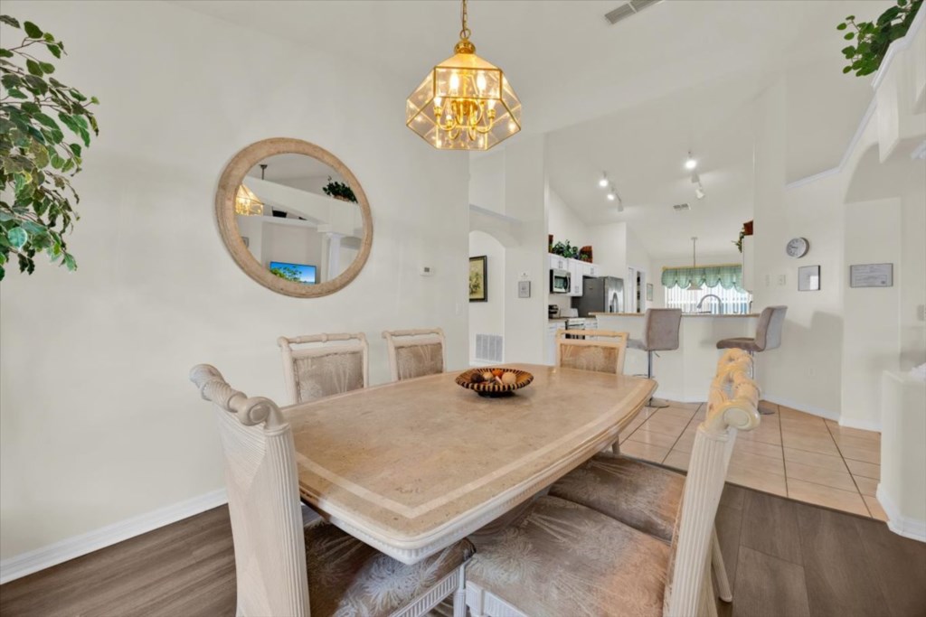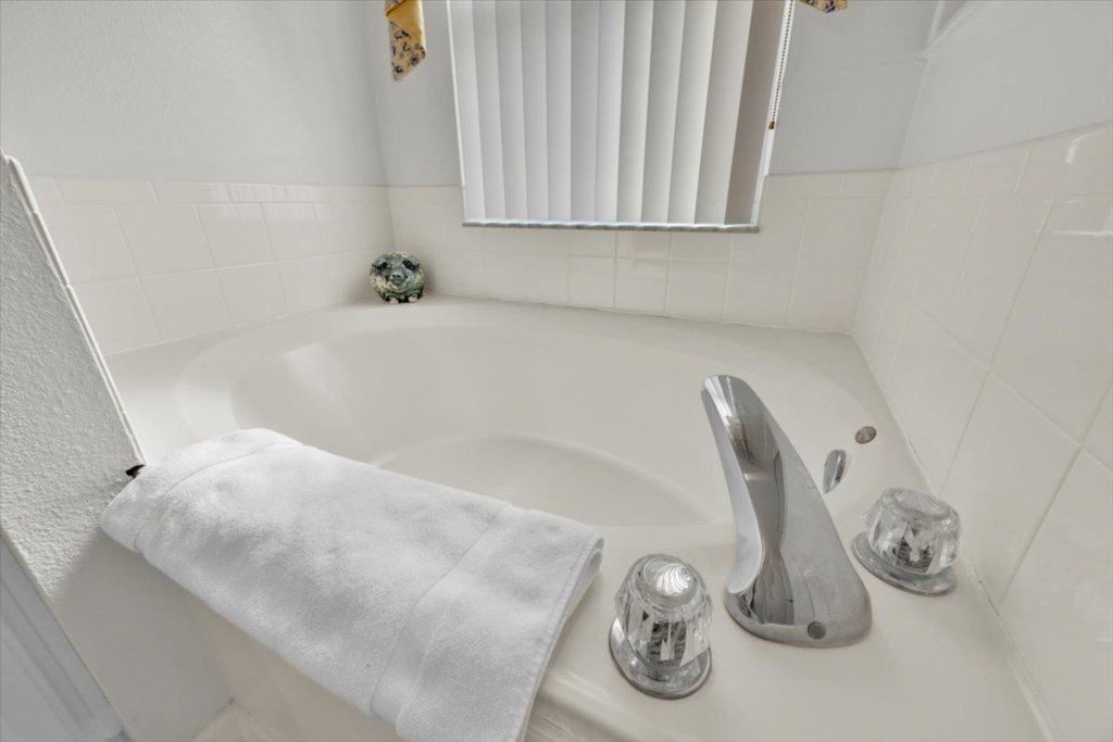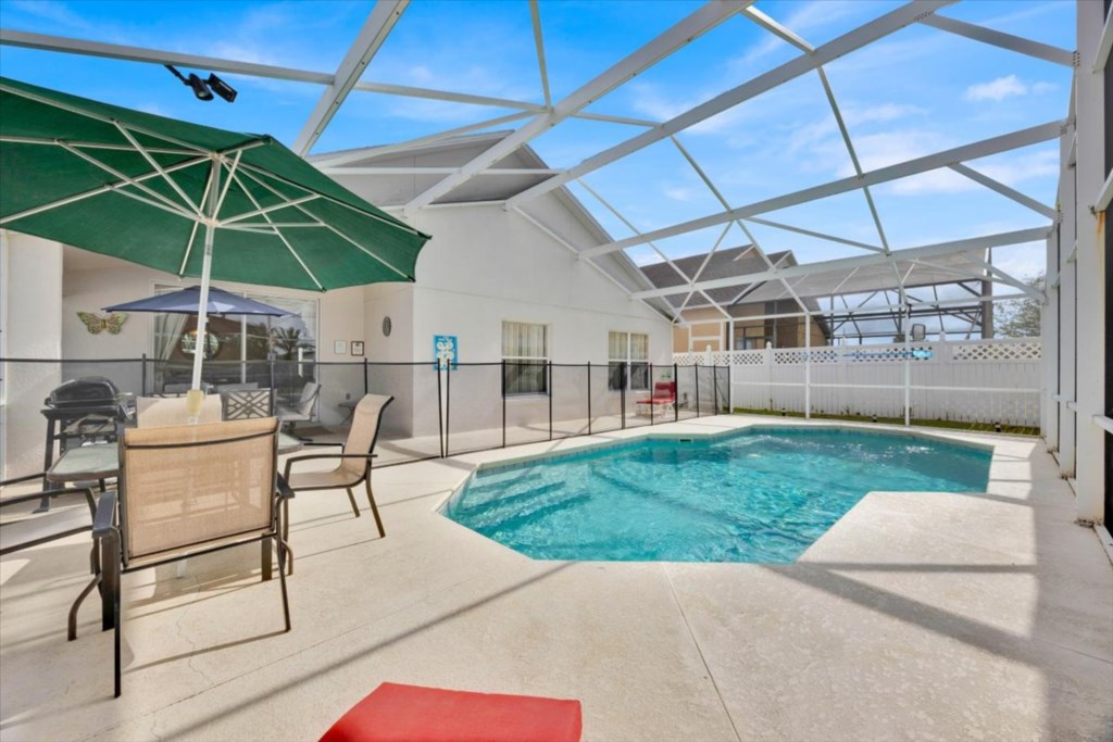 Welcome to your family vacation home! This one level home features 4 bedrooms and 3 bathrooms and private pool. It’s nestled in the Four Corners Community, a community with a mixture of residential and vacation homes. With a private pool and modern amenities, this home comfortably sleeps 8 guests. Located minutes from Orlando's attractions, this is your perfect getaway. Located Approximately:- Walt Disney World Property 12 miles- Universal Studios 24 miles- SeaWorld 19 miles- Publix at Champions Gate Crossing 1 mile- Orlando Intl. Airport (MCO) 31 miles- Atlantic Coast Beaches 80 miles- Gulf Coast Beaches 83 miles- Lounge: Guests will have a relaxing stay with plenty of space to spend time with family or friends but still have privacy when needed. Guests can chill out or opt for peace and quiet and read a book. - Eat: The kitchen is fully equipped with dishes, cutlery, oven trays, pots and pans to allow you to cook family meals. There is a stove and oven, dishwasher and fridge freezer. There is a breakfast nook, which seats 4, to sit and catch up with friends or family and plan your day. There is also a dining room table with seating for 6.- Play: After a long day at the parks or shopping you can chill out by the pool (pool heat can be added at an additional cost) we have a large deck area where you can relax on the sun loungers or have lunch outside by the pool at the table with seating for 6. we also have a large covered area if you prefer to sit out of the Florida sun. Kids will enjoy the chance to have their own pool and will love spending the day at the house to enjoy it.-Rest: Primary Bedroom: Large comfortable King size bed, TV and ensuite bathroom. Bedroom 2: Queen bed with TV and ensuite bathroomBedroom 3: Two twin beds and TVBedroom 4: Two twin beds and TVBedroom 3 & 4 share a bathroom- Additional Amenities -Free high-speed wireless internet and cablePrivate washer and dryer, along with an iron and ironing boardFenced BackyardFully Equipped KitchenGame Room with Pool tableParking in the driveway for two cars- Important Notes -* Self-Catering: The home includes basic supplies such as soap, 1 trash bag per bin, small laundry and dish detergent, and dishwasher tabs.* Pool Heating: Available for $30/day plus tax (72 hours' notice required)* Licensed by the State of Florida with safety features such as smoke detectors, fire extinguishers, and pool alarms